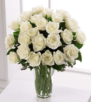 12 White Roses In a Glass Vase