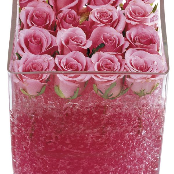 16 Pink Roses Arrangement in a Square Glass Vase