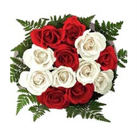 12 Red and White Roses Bunch