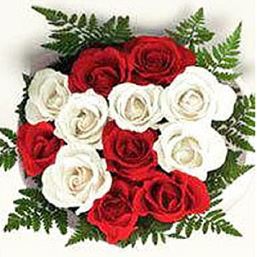 12 Red and White Roses Bunch